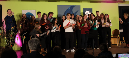 Beschwingt eröffnete der Schulchor den Abend mit „Count on Me“ und „I Have a Dream“. Auch der Jubiläumschor, der sich anlässlich des 125-jährigen Schuljubiläums gegründet hat, bereicherte das Programm mit dem Lied „Light of Grace“. Zu den bewährten Konzertbeiträgen zählten die Gitarren-AG mit ihren zarten Klängen bei „Llorando se fue“ und „Can’t Help Falling in Love“ sowie das Kammerorchester, das mit der Titelmusik aus „Game of Thrones“ und „Zooster’s Breakout“ aus dem Film „Madagaskar“ für begeisterten Applaus sorgte.