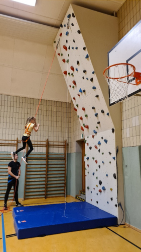 In der Kletter-AG werden natürlich auch die Grundlagen des Toprope-Kletterns vermittelt und die nötigen Sicherungstechniken geübt.