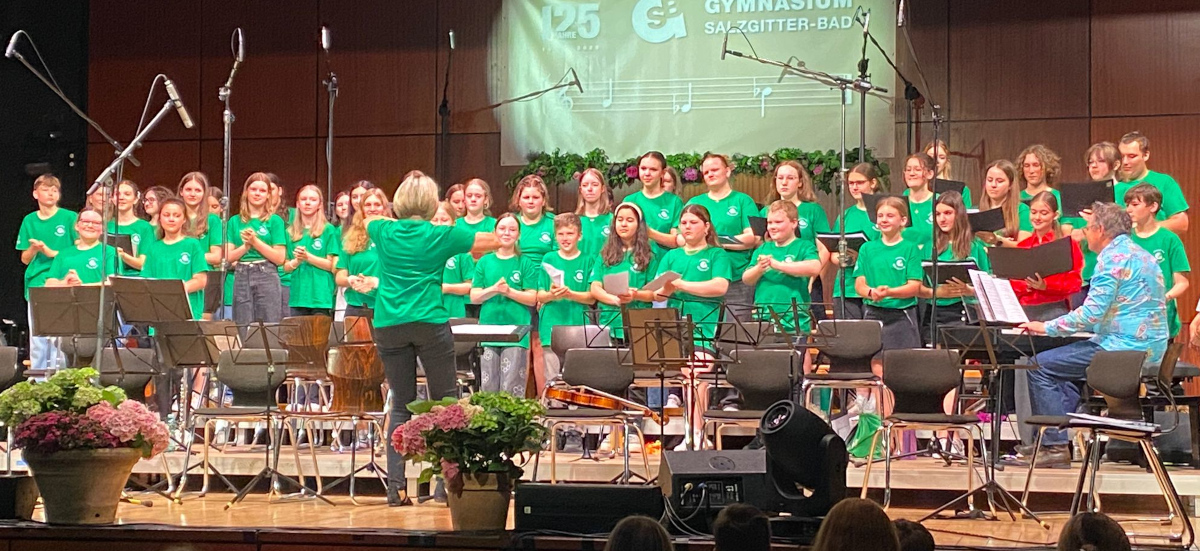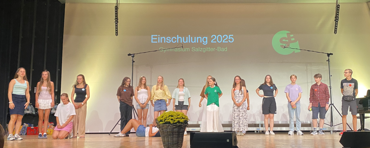 Am 15. August 2025 wurden 160 Schülerinnen am Gymnasium Salzgitter feierlich in der Aula eingeschult. In einer kurzweiligen Feierstunde begrüßten Herr Fischer, stellvertretender Schulleiter, und Frau Peter, Koordinatorin der Eingangsstufe, die Neuen. Die Paten stellten sich und ihre Arbeit vor, während zwei Sechstklässlerinnen in einer Unterhaltung von ihren ersten Tagen an der Schule berichteten. Der Schulchor unter der Leitung von Frau Grothe sowie die Ehemaligen Johanna Below und Justus Buttke sorgten mit Musik für die richtige Stimmung. Anschließend zogen die sechs 5. Klassen mit ihren Klassenleitungsteams und Paten in ihre neuen Klassenräume in der Helene ein. Der Schulverein und der Jahrgang 13 kümmerten sich währenddessen um das leibliche Wohl der aufgeregten Eltern. Mittlerweile haben die neuen Schülerinnen ihre Einführungswoche abgeschlossen und finden sich allmählich im Schulalltag zurecht.